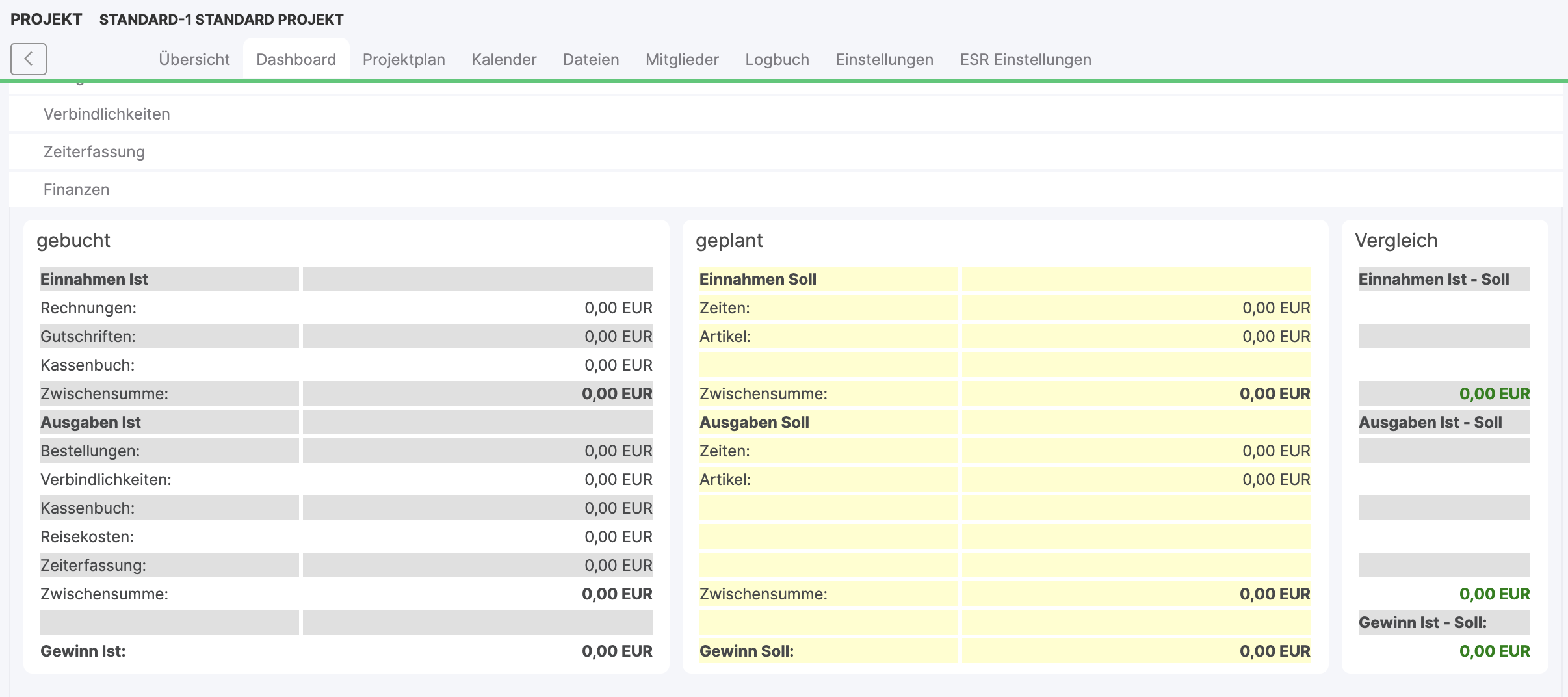 In the finance sub-tab you will find a general overview of your project activities: