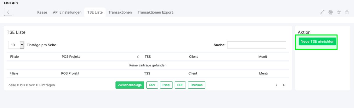 Now switch to the TSE tab. Create a new TSE here via the button Set up new TSE.