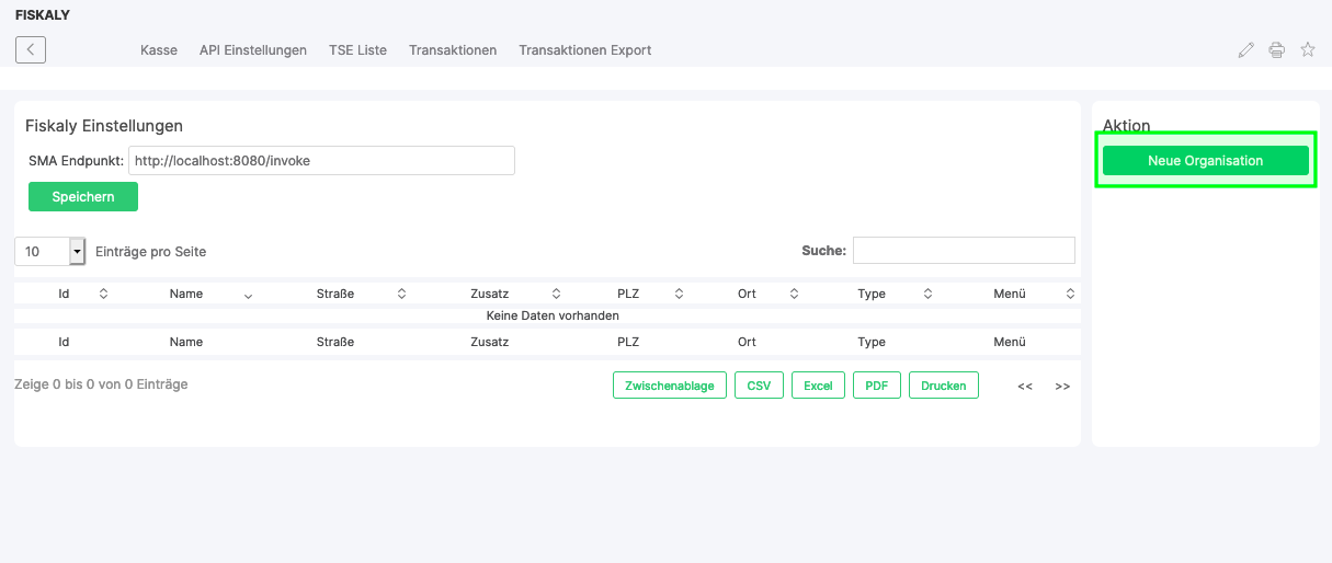 You can create additional organizations if, for example, you have different operating sites, i.e. different locations where one or more cash registers are operated. This gives you an overview of the operating sites in the list.