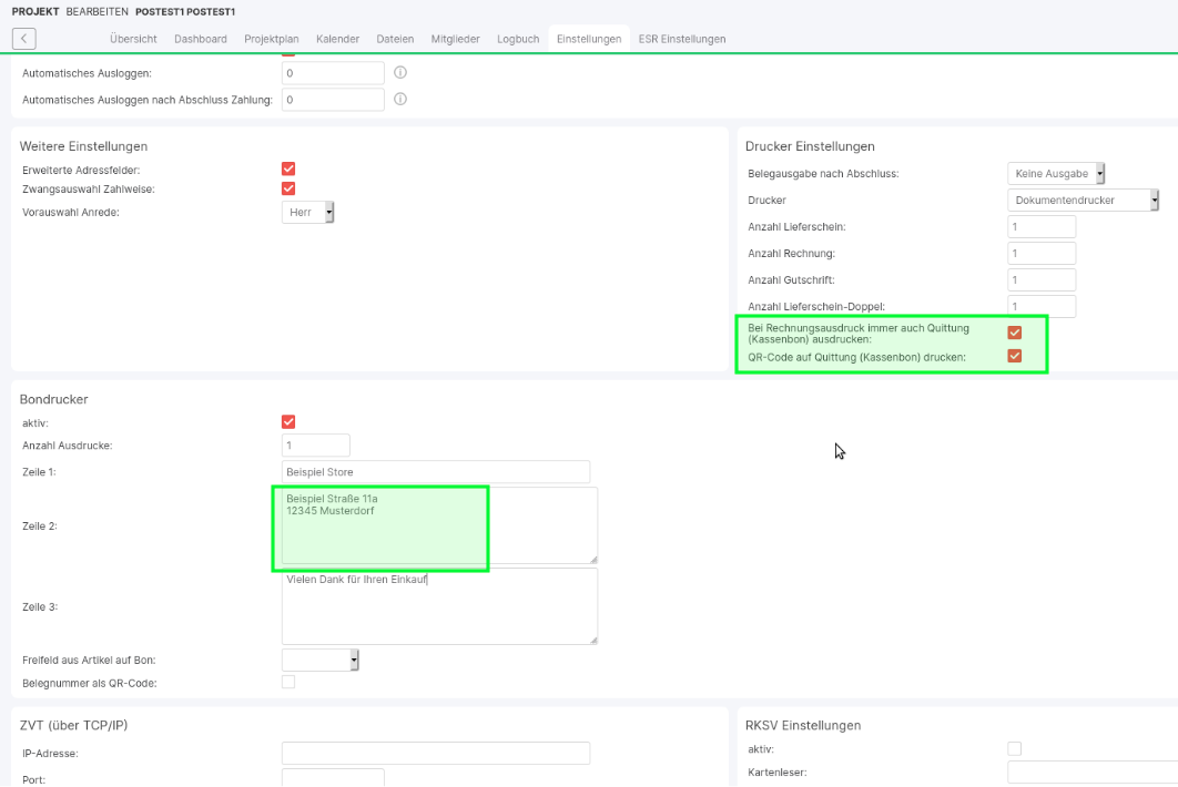Print QR code: option can be activated. If a real receipt printer is used ("Adapterbox" module used), this is activated here. If no receipt printer is used, TSE/receipt generation (PDF) is still always effective