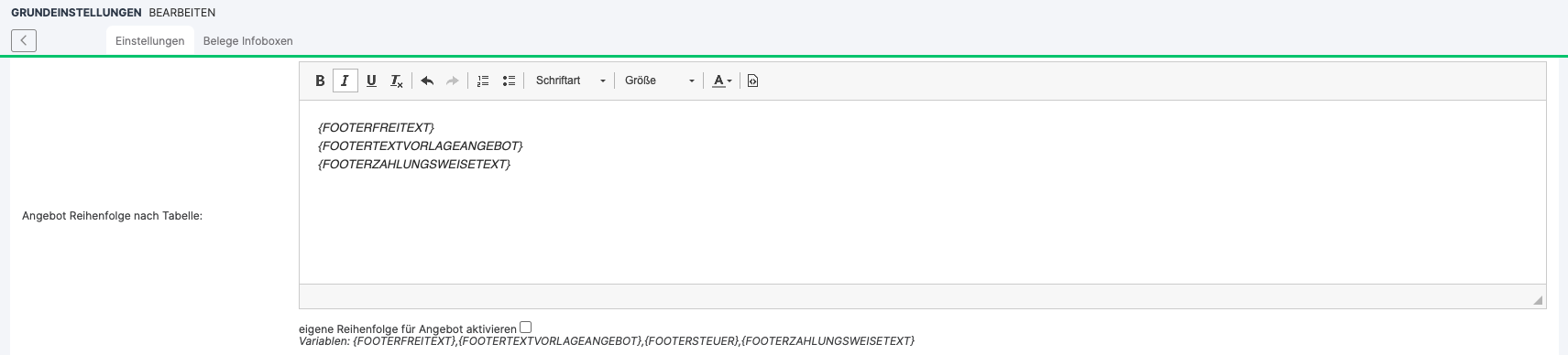 wurde im Briefpapier die Reihenfolge der Footer umgesltellt und fehlt die Variable {FOOTERSTEUER}