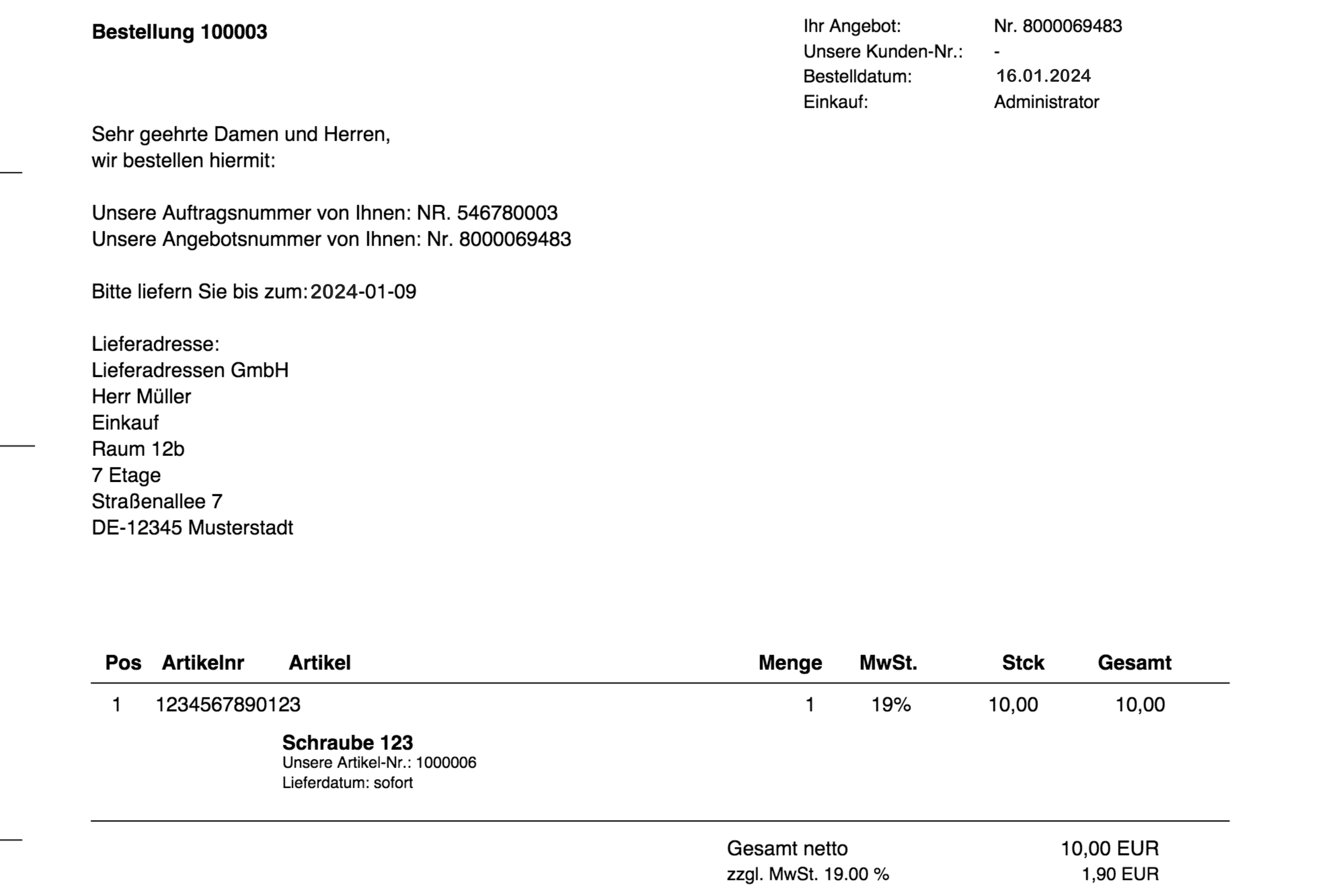 {ADRESSE_KUNDENNUMMERLIEFERANT} → Kundennummer, die Sie von Ihrem Lieferanten erhalten haben (in seiner Warenwirtschaft), wenn Sie dort bestellen
