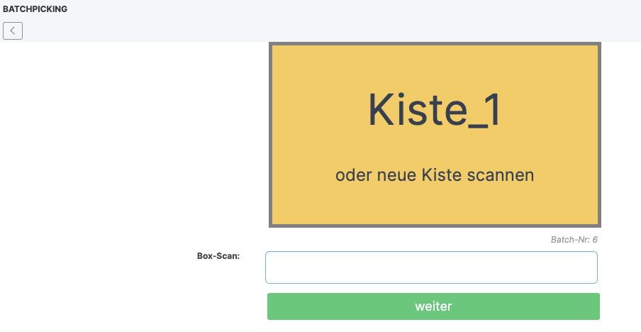 It continues with the next article. The system automatically recognizes if the article belongs to an existing order and suggests the same crate. If this crate would be full, you can also select another crate.